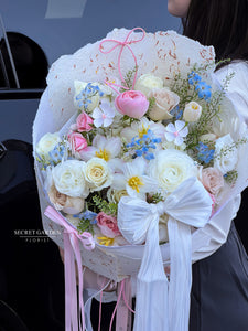 Each design is unique and won’t look exactly like the photo. Flowers will be substituted based on seasonal availability.